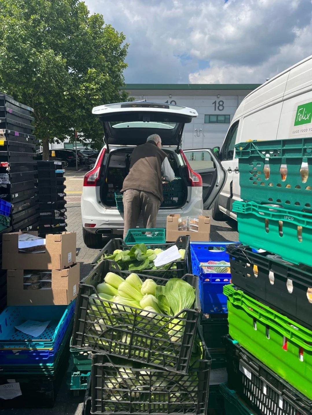 Once a week, on a Thursday, our volunteers collect a van full of quality fresh food from the Felix Project that would otherwise have gone into landfill, repack and then deliver it in crates to approximately 45 households in the locality. Our volunteers also benefit from this free food.